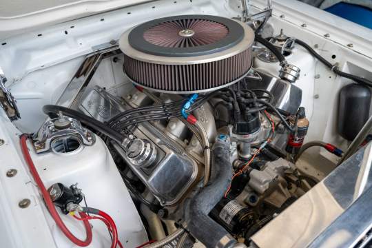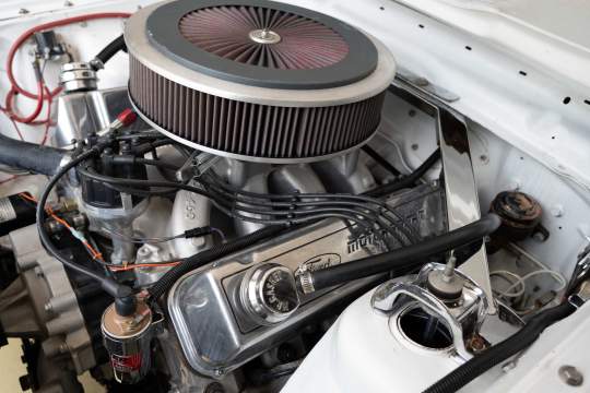 Edelbrock intake manifold, 1150 Holley carb, ATI crank pulley, MSD distributor, Accusump oil accumulator with remote filter, ceramic coated headers, aluminum radiator.