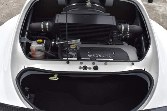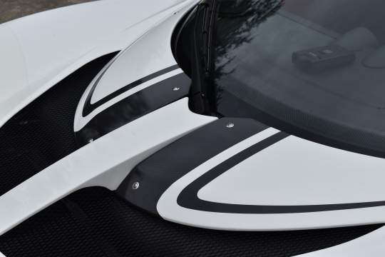 Factory equipped with carbon fiber roof, rear hatch, rear wing, splitter, seats, and interior trim